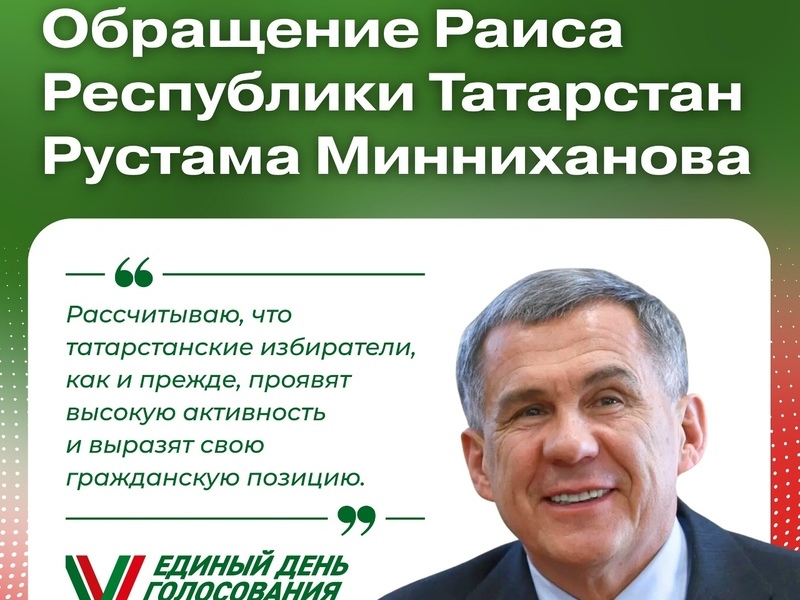 Раис Республики Татарстан обратился к татарстанцам в преддверии выборов