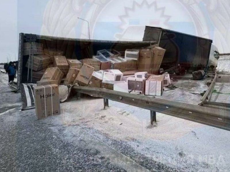 На М-12 КАМАЗ столкнулся с фурой