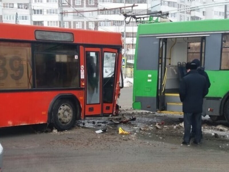 В центре Казани столкнулись автобус и троллейбус