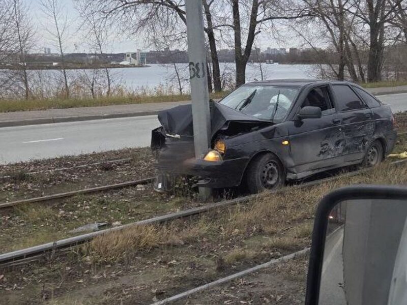 В Казани машина вылетела на пути и врезалась в столб